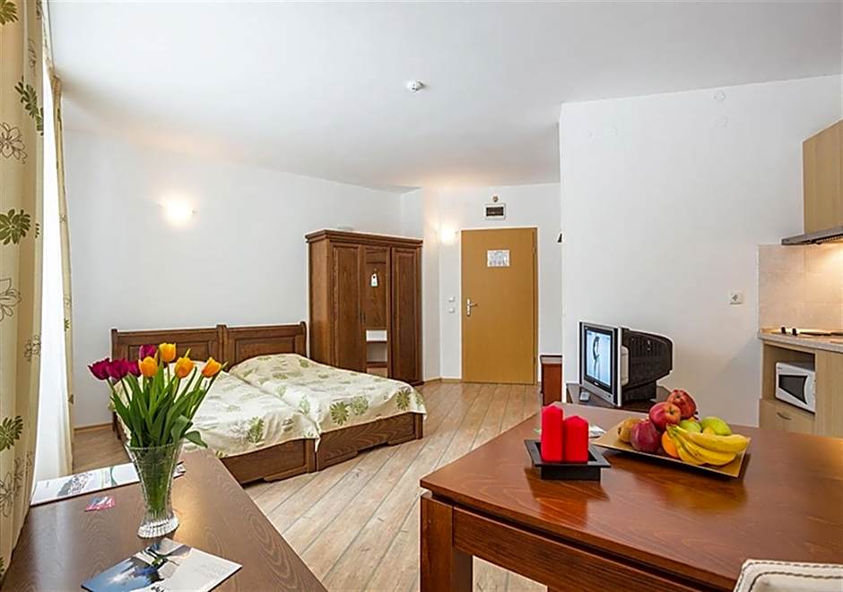 Pamporovo’nun karlı harikalar diyarında bir gün geçirdikten sonra, tesis içindeki Ресторант #1’de yerel tatların parladığı aile dostu, geleneksel bir ortamda dinlenin. Kapalı yüzme havuzu ısıtmalı olup sığ bir bölümü vardır; hızlı bir dalış için ideal. Daha derin bir gevşeme için ise ücretsiz fitness merkezi, spa, buhar odası ve sauna hizmete hazır. Terasa çıkın ya da özel girişten dışarı çıkarak dağ havasını ve manzarayı içinize çekin ve ücretsiz Wi‑Fi ile bağlı kalın. Ücretsiz özel otopark ve ücretsiz servis ulaşımı kolaylaştırır; tesis içi kayak kiralama ise ekipmanı bir sonraki inişe hazır tutar—sadece Türk hamamı/buhar banyosu, toplantı/banket olanakları ve havaalanı servisi için ek ücret uygulanacağını unutmayın.